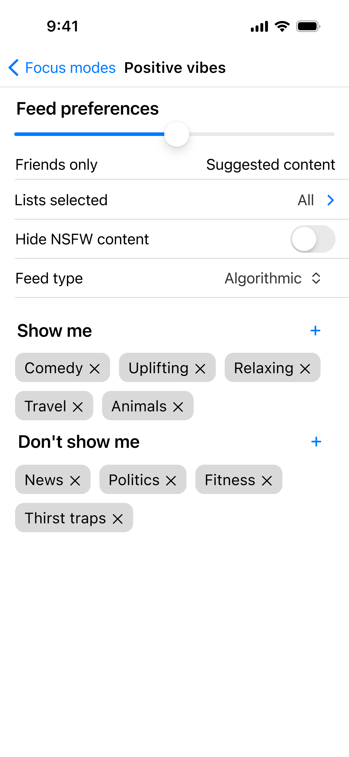 Participants in the evaluation sessions appreciated this level of customisation: "I really like that you can customise each of those categories even further. It's not just what Instagram thinks is positive vibes, it's what you specifically want when you select that tab".