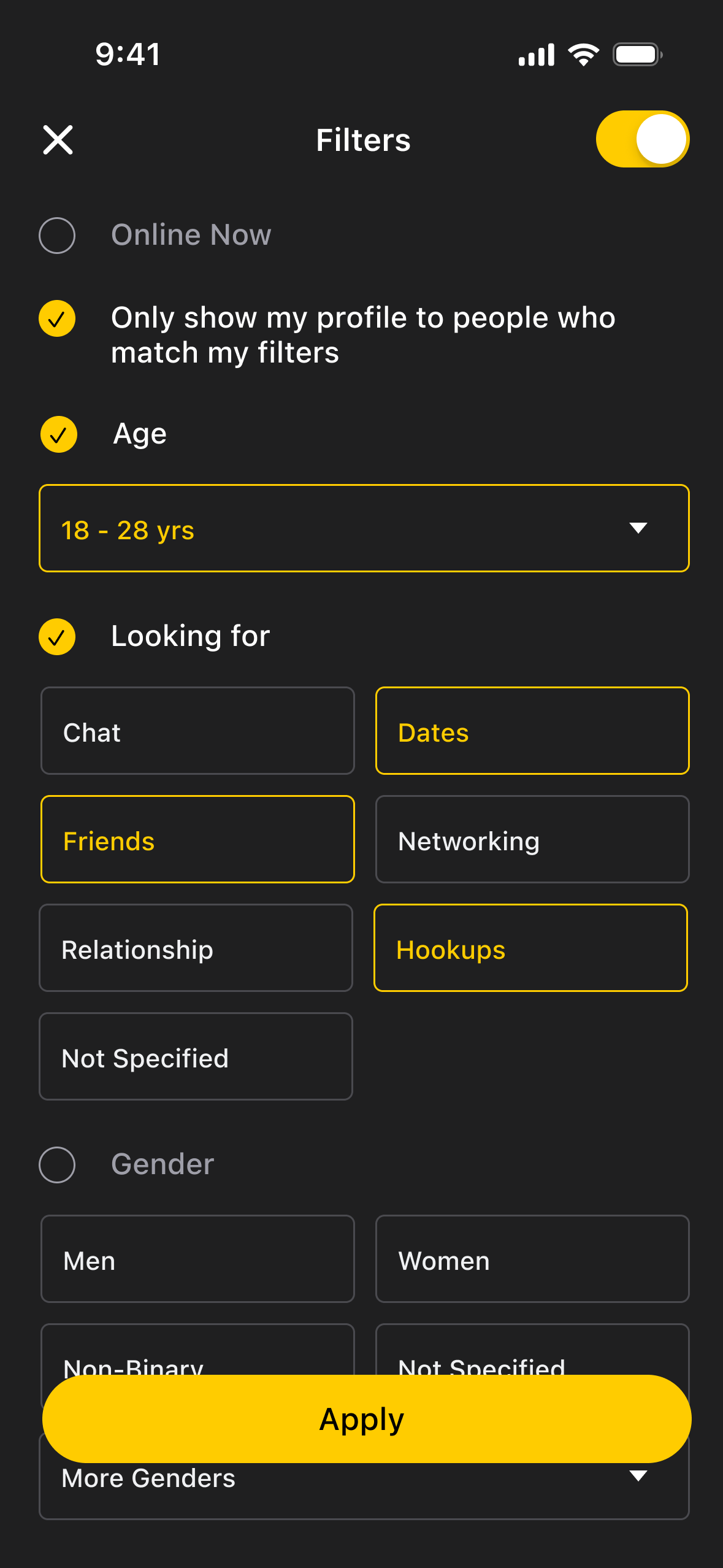 The mockup on the right provides an example of how this could be implemented on Grindr. It gives people a new option to only show their profile to people who match their filters.