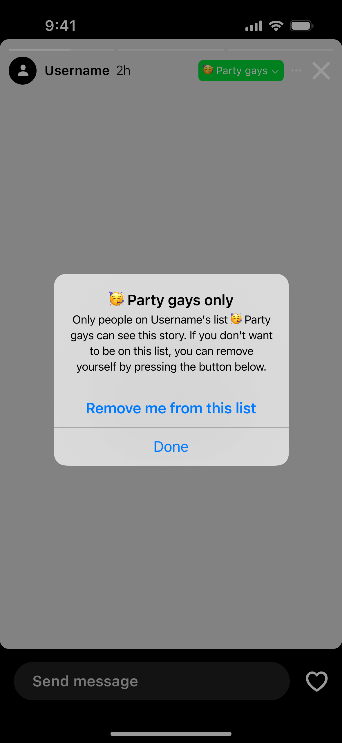 People should be able to advertise curated audience lists so that people can opt-into being part of them. Ideally, this should be able to be shared with an existing list, for example, allowing one to advertise a story for a specific topic to one's close friends, as Snapchat currently offers. In addition, people should be able to advertise public lists on their profiles. As many of our participants described, they used stories with curated audiences for non-sensitive topics as a way to avoid spamming all their followers, for example, some described using them to talk about video games.